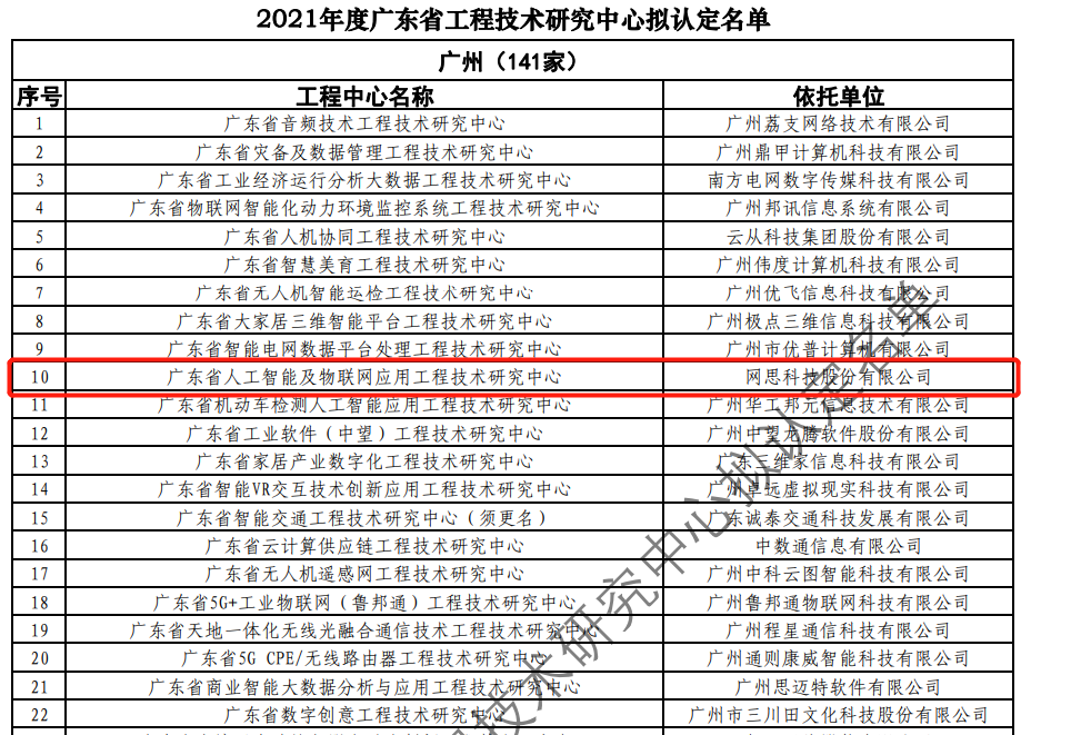 日前,广东省科技厅发布2021年度广东省工程技术研究中心名单。经过层层筛选、专家评审,依托乐鱼体育-乐鱼体育集团有限公司 建设的“广东省人工智能及物联网应用工程技术研究中心”榜上有名。广东省工程技术研究中心主要依托省内行业、领域具有科技实力的、拥有一定规模以上创新型企业建设,部分依托高校和科研院所组建。工程中心旨在